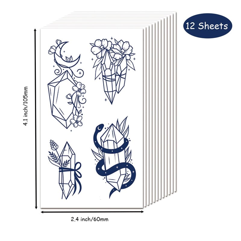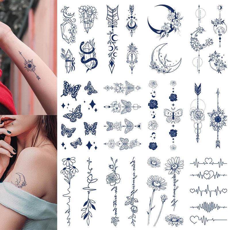 - ✩【Package Includes】 12 sheets semi permanent tattoo stickers, 2.36"×4.13"/sheet,with 30+ designs including butterfly, wild flower, daisiy, rose, moon, diamond, arrow, snake, radio wave, etc