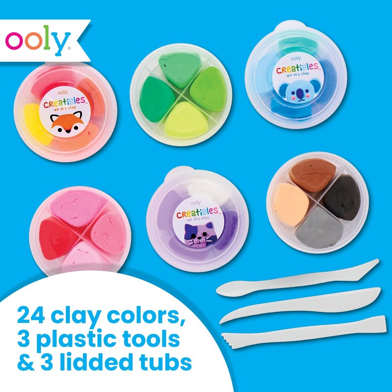 OOLY Creatibles, 24 Colors Air Dry Clay Kit for Kids Craft, Modeling Clay with 3 Shaping Tools, Craft Supplies & Materials, Airdry Clay DIY Art Set for Kids Ages 6 and Up