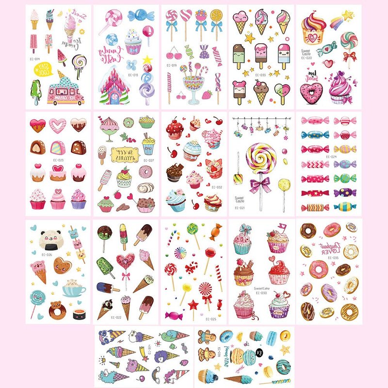 Colorful premium kids Ice Cream, Lollies, Cookie, Cake tattoos, Perfect for kid's summer parties