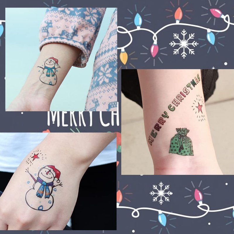 - ❤MORE SAFETY & HEALTHY CHOICE -- These Christmas temporary tattoos made of high quality safety and green paper, Non-allergenic,Non-toxic and totally safe for your kid's skin. Simply wet the tattoo with water and stick transferred them onto your body, hands, faces and arm you like, Tattoos will last from 3 to 5 days ,it also can be easily removed with baby oil, makeup remover or rubbing alcohol.