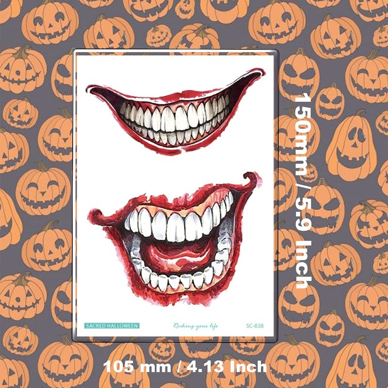 - 👻MORE SAFETY & HEALTHY CHOICE-- These halloween temporary tattoos are made of high quality safety and green paper, Non-allergenic,Non-toxic and totally safe for your kid's skin. Simply wet the tattoo with water and stick transferred them onto your body, hands, faces and arm you like, Tattoos will last from 3 to 5 days ,it also can be easily removed with baby oil, makeup remover or rubbing alcohol.