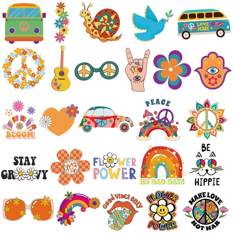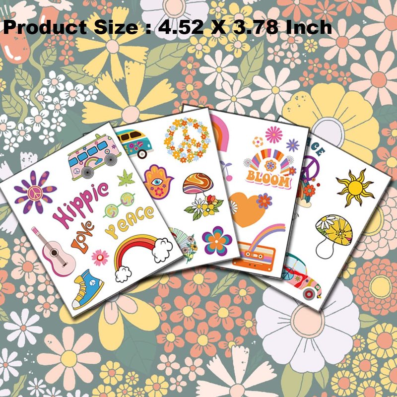 Ooopsiun Hippie Temporary Tattoos for Kids - 70 Styles,Groovy 70s Peace and Love Flower Power Birthday Party Favors for Boys Girls