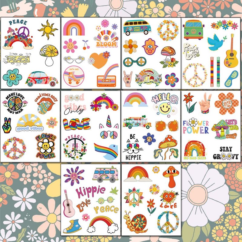 - ❤SUITABLE for VARIOUS OCCASIONS-- These fake tattoos can be used in various occasions, such as groovy theme birthday party supplies, party decorations, party favors, party bags, DIY decorations, summer holidays, pool and the beach or gift for kids and rewards.