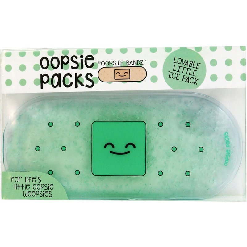 These Oopsie Ice Packs by Oopsie Bandz are perfect for life's little Oopsie Woopsies! To ease discomfort for bruises, sprains, insect bites, headaches, or sunburn, apply cold for serveal minutes. Store the Oopsie Pack in the freezer so that's it always ready to use. Comes in assorted colors. Measures 6.25 inches by 2.75 inches Assorted colors Apply cold for several minutes to ease discomfort for bruises, sprains, insect bites, headaches, and sunburn Store in freezer You get one of each color - total of 4 for children over 3 years - but under adult supervision to be used as an ice pack NOT for teething