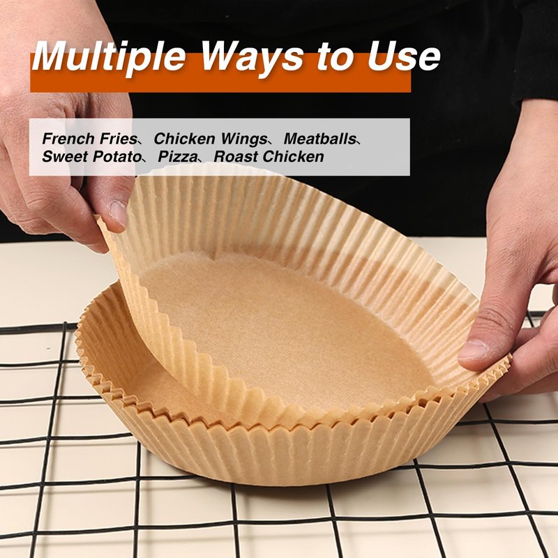 - 【SIZE INFORMATION】This air fryer liners are Round in shape, bottom width: 6.5 inches, top width: 8 inches, height: 1.77 inches,Suitable for 2-4 quart air fryers, each set provides 100Pcs air fryer paper, enough to use for a long time.
