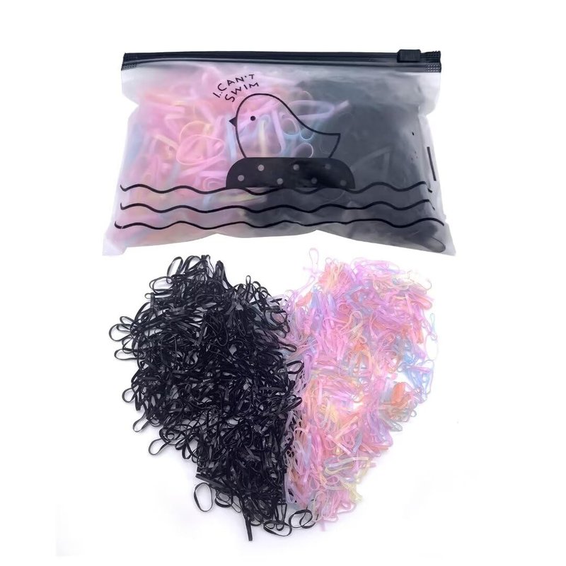 OOTDAY Mini Rubber Bands, Hair Ties No Damage, Rubber Bands for Hair, Ponytail Holders, Elastic Hair Ties for Women Kids Braids Hair Clear, Jelly and Black(1000PCS)