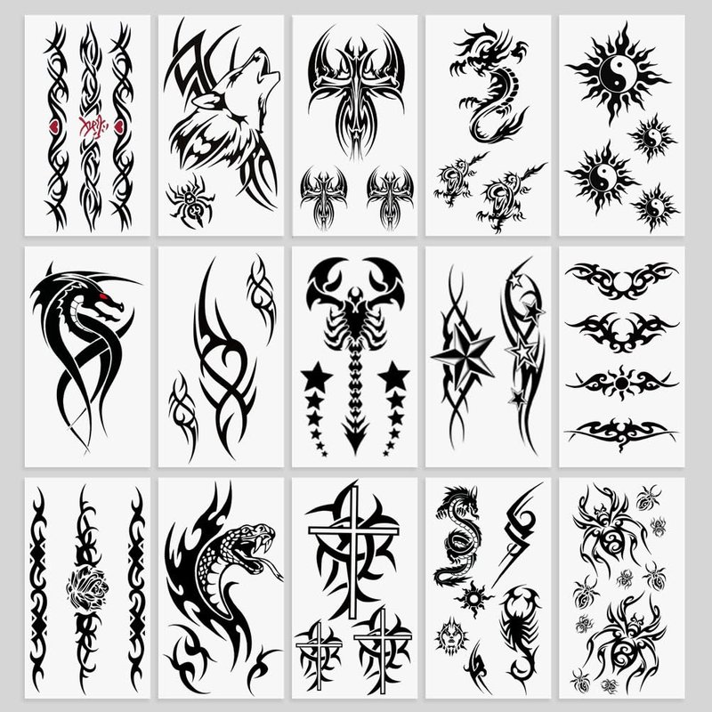 Oottati 15 Sheets Small Cute Hand Arm Temporary Tattoo Stickers Black Dragon Snake Star Cross Wolf Flower Scorpion Spider Totem