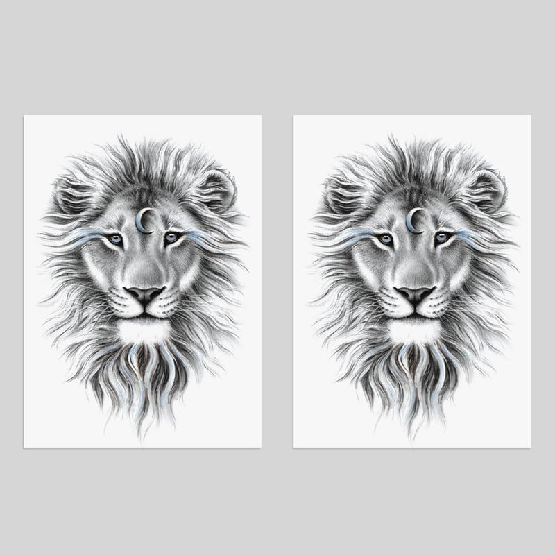 Oottati 2 Sheets Arm Thigh Leg Waterproof Fake Temporary Tattoos Sticker Grey Lion
