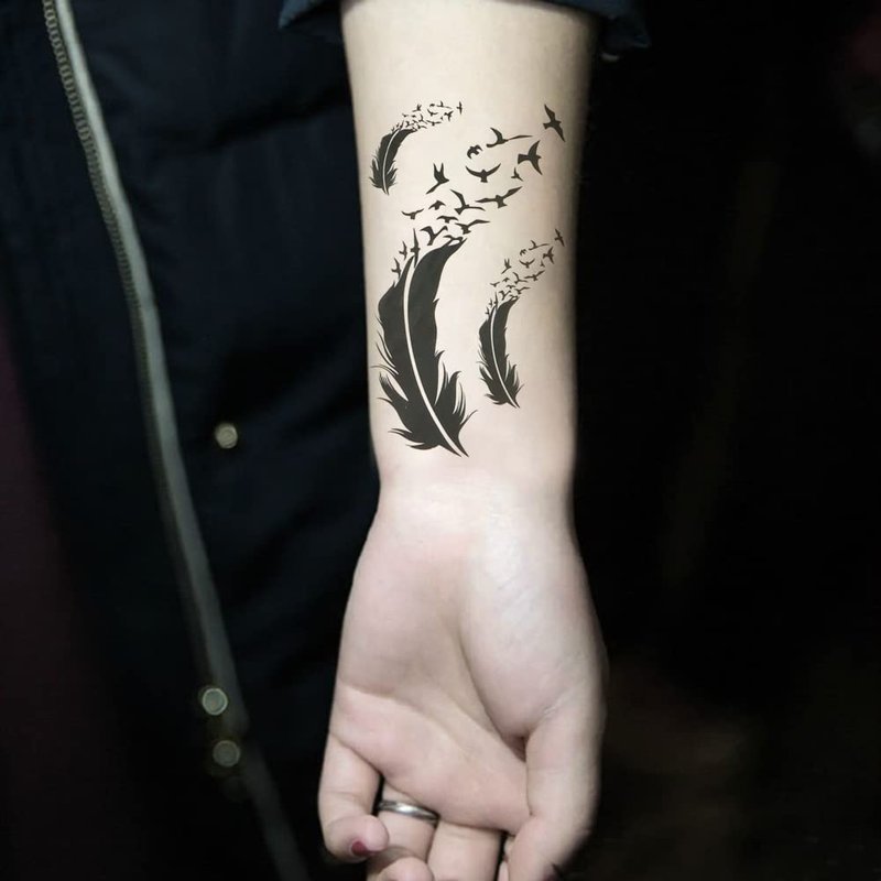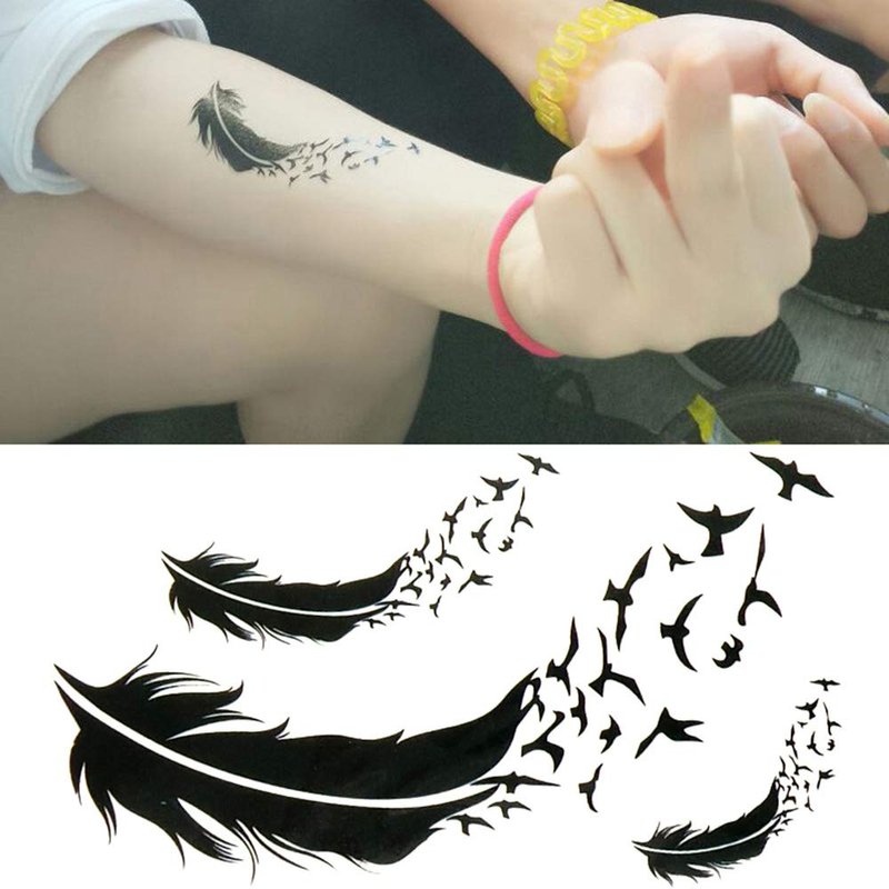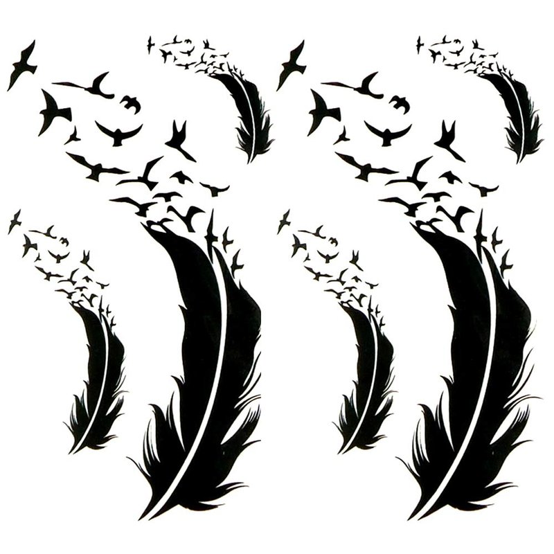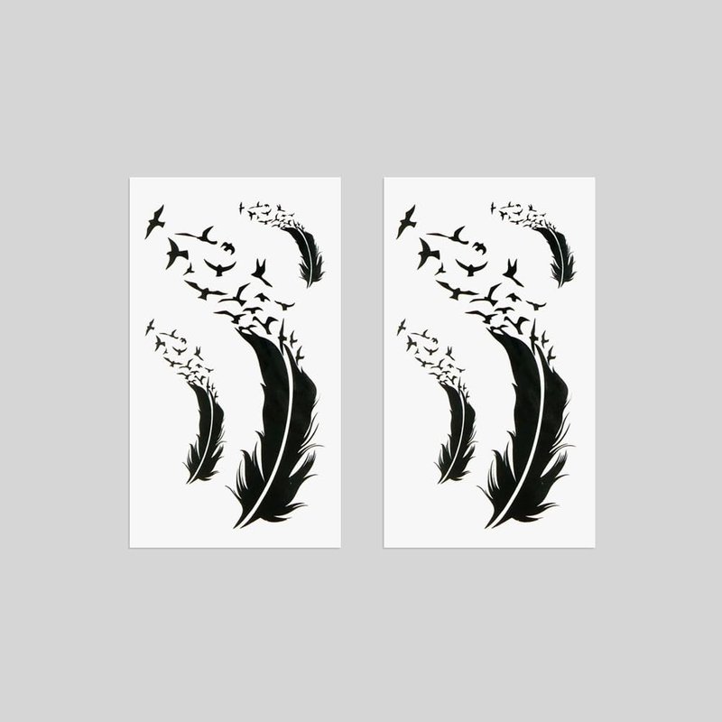 Oottati 2 Sheets Small Cute Temporary Tattoo Stickers Black Feather Birds