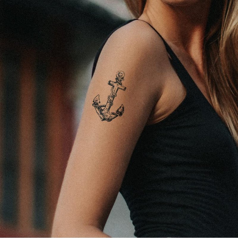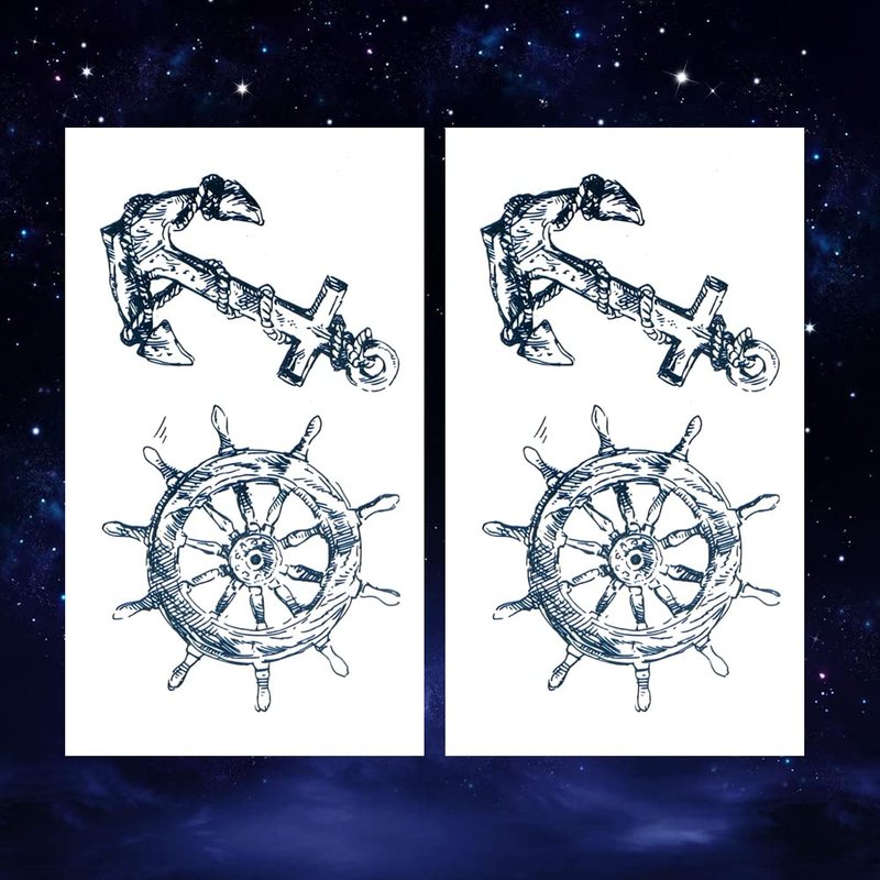 Oottati 2 Sheets Small Cute Temporary Tattoo Stickers Riding Boat Anchor Arm