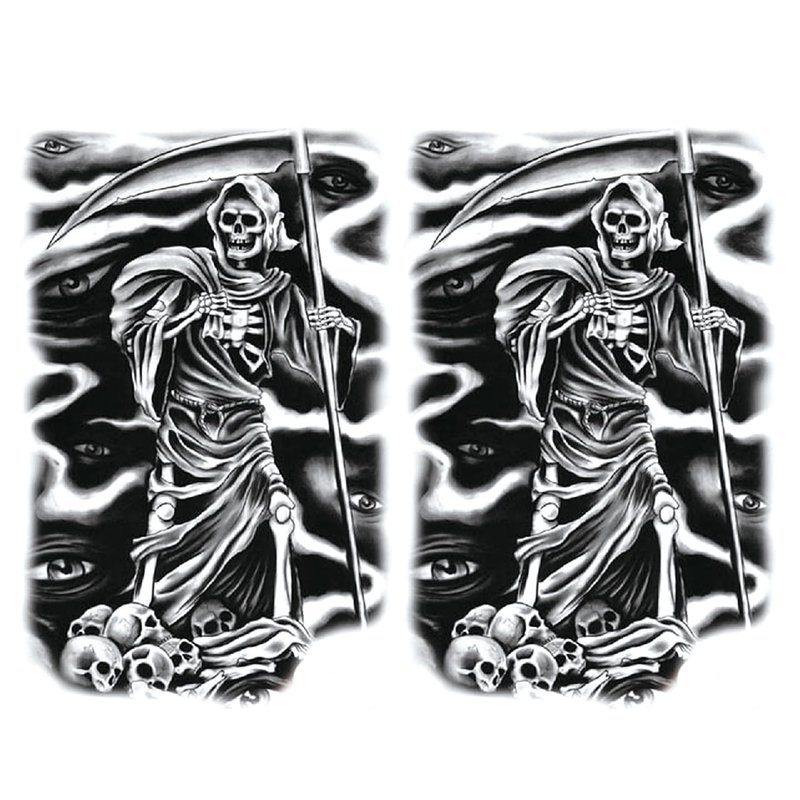 Oottati 2 Sheets Waterproof Arm Temporary Tattoo Stickers Death Skeleton Skull Grim Reaper God Sickle Eye