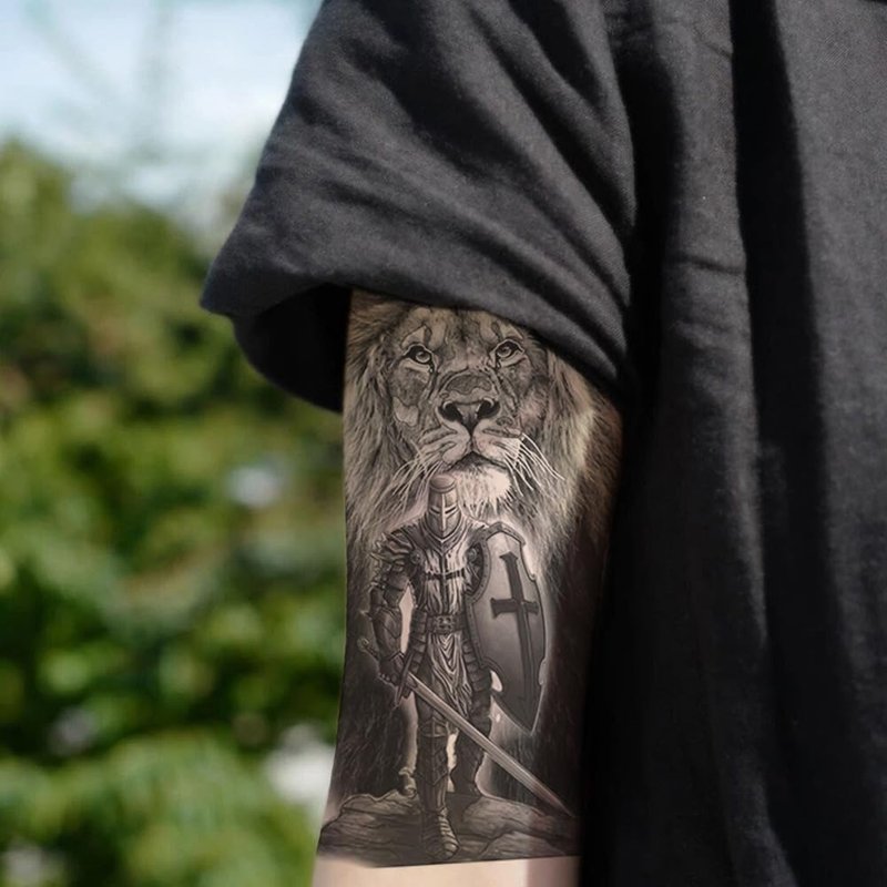 Oottati 2 Sheets Waterproof Arm Temporary Tattoo Stickers the Crusades Knight Soldier Warrior Cross Lion