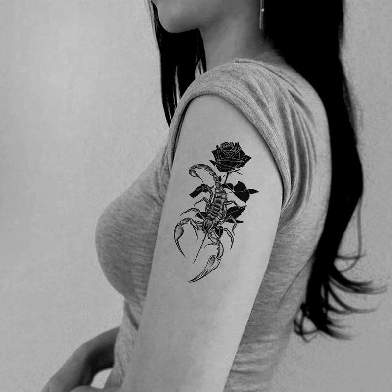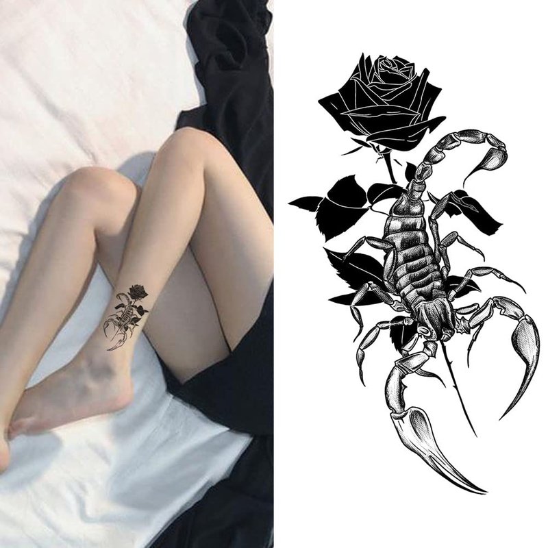 Oottati 2 Sheets Waterproof Small Cute Fake Hand Neck Temporary Tattoos Stickers Halloween Black Scorpion Rose Flower Totem