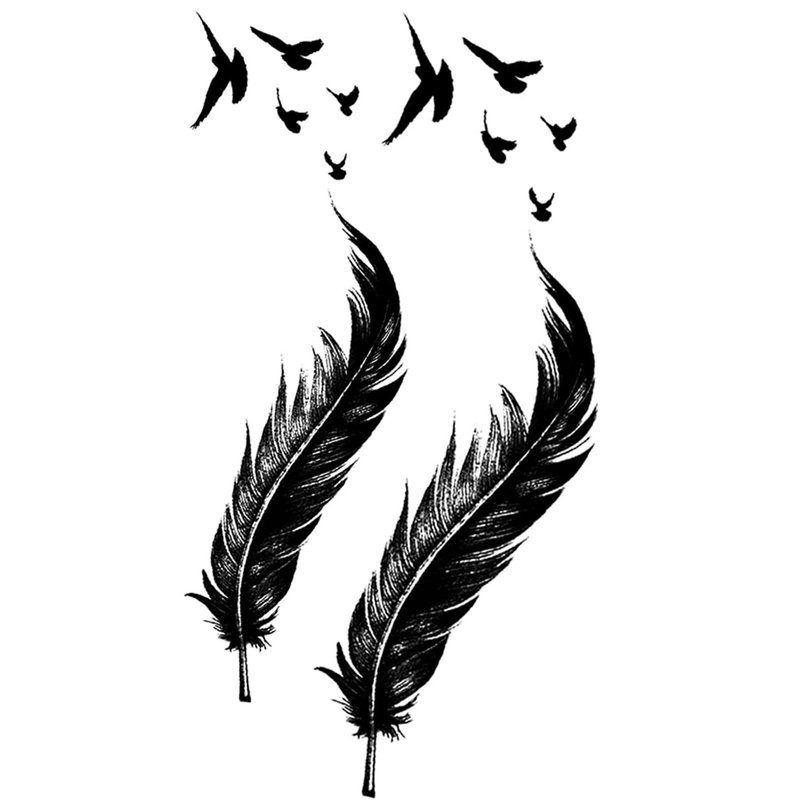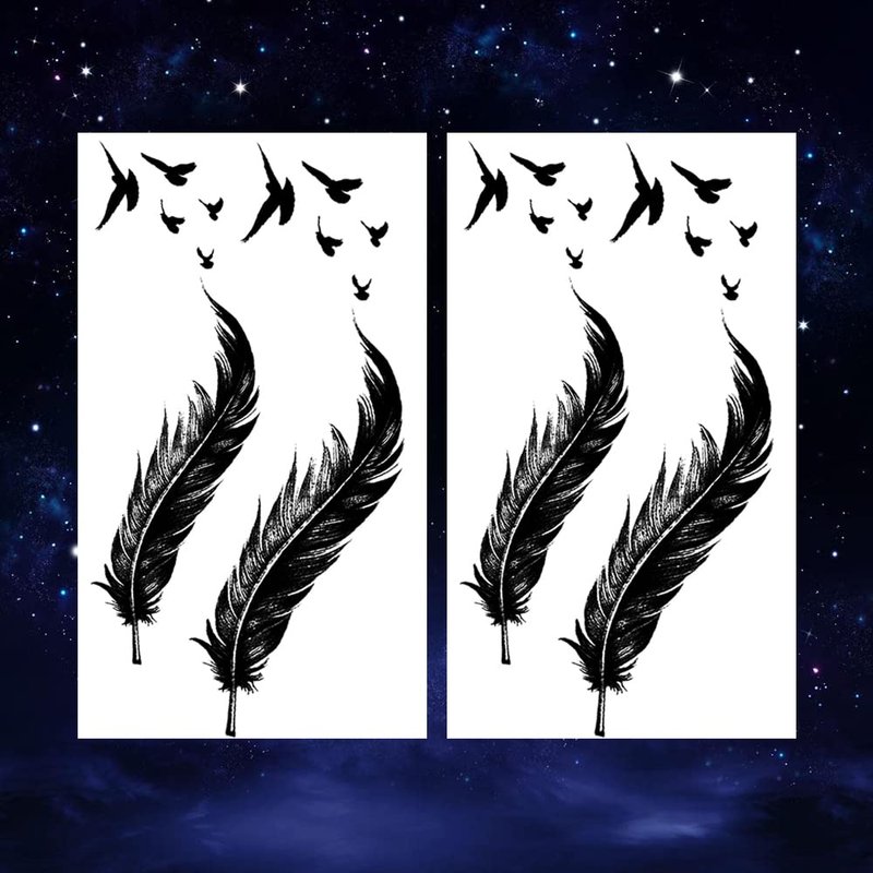 Oottati 2 Sheets Waterproof Small Cute Fake Hand Neck Temporary Tattoos Stickers Scar Cover 2pcs Black Feather Birds