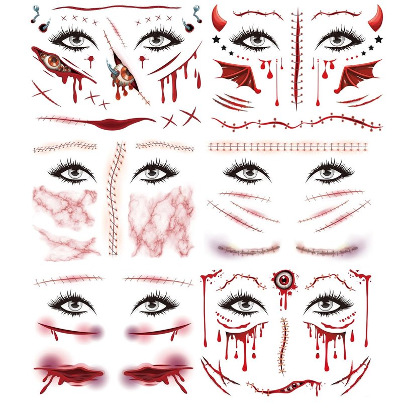 Oottati 6 pcs Scary Big Mouth Halloween Realistic Face Temporary Tattoo Stickers Horror Prank Props Blood Make Up Face Decals Cosplay Vampire Party Zombie for Men Women