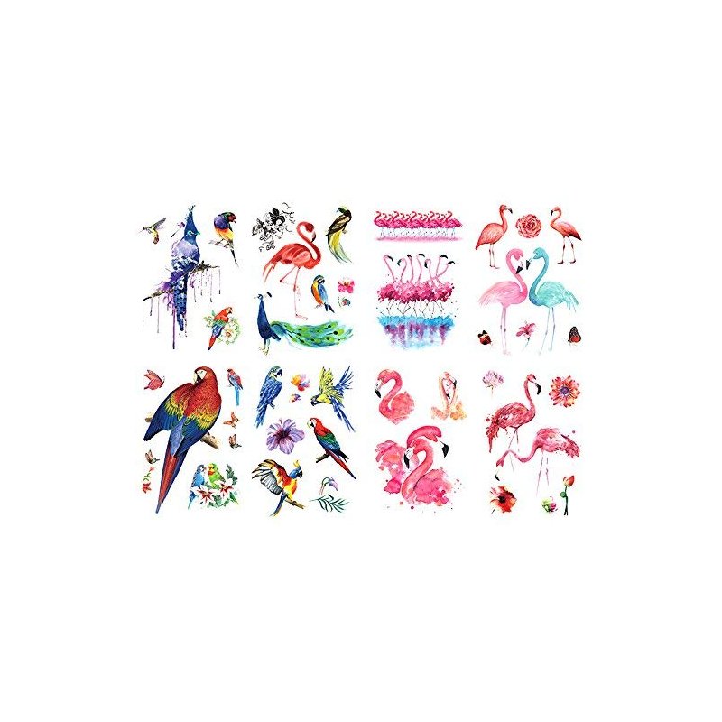Oottati 8 Sheets Temporary Tattoo Stickers, Waterproof Arm Leg, Parrot Bird Peacock Macaw Pink Flamingo Butterfly Flower for Women