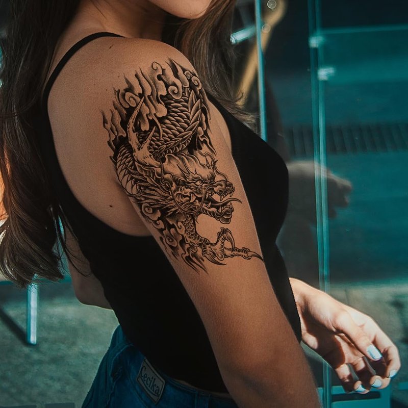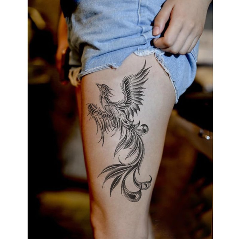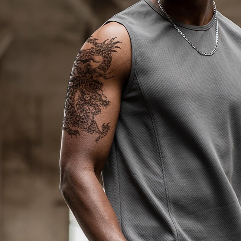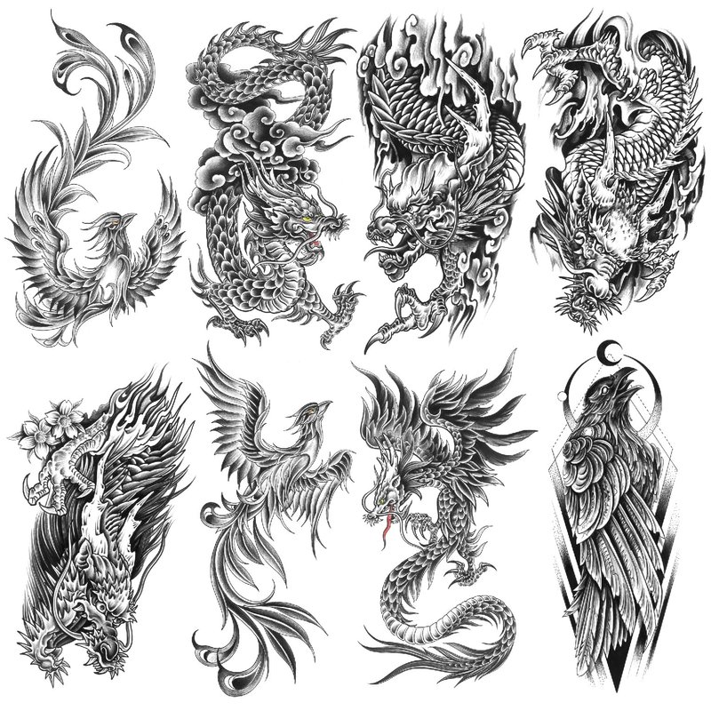 Oottati 8 Sheets Waterproof Arm Temporary Tattoo Stickers Black Flying Dragon Phoenix