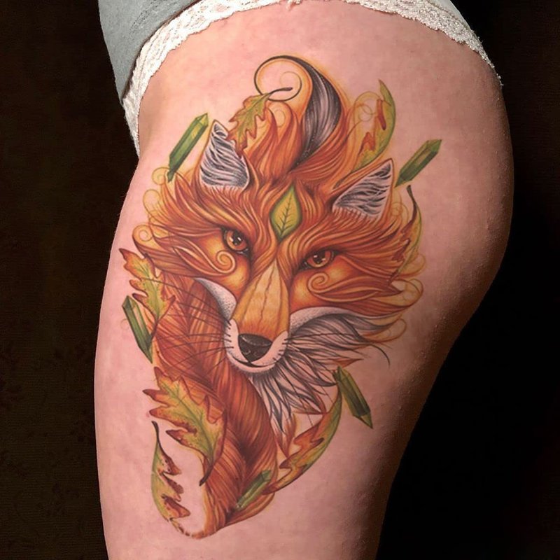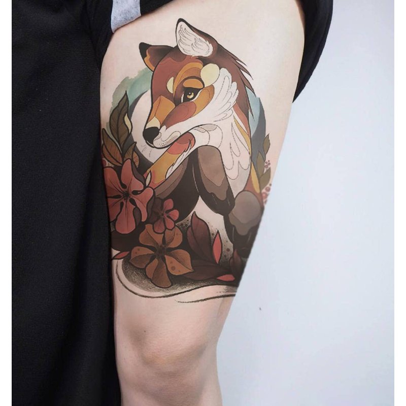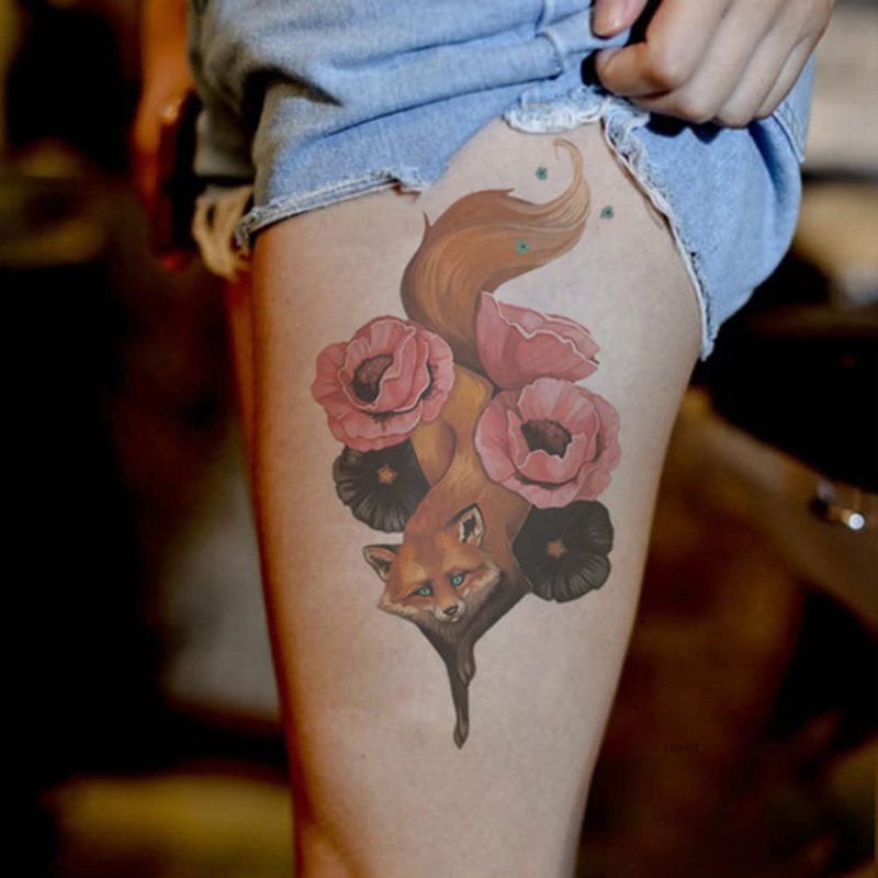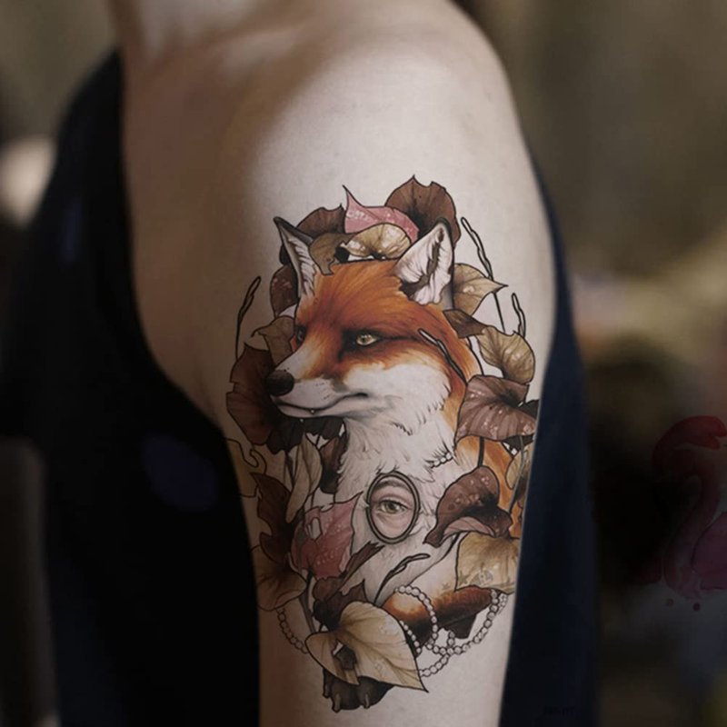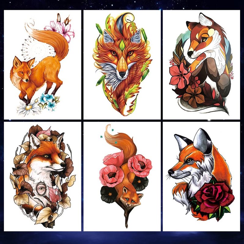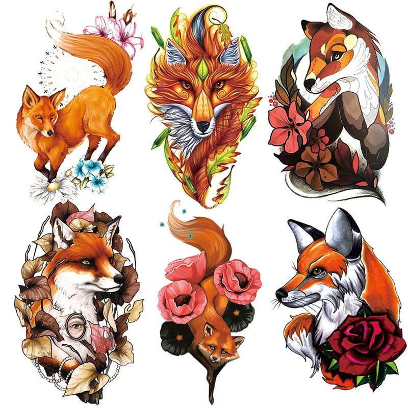 Oottati Waterproof Fake Temporary Tattoos Sticker 6 Sheets Color Arm Leg Orange Hand Print Fox Leave Flower