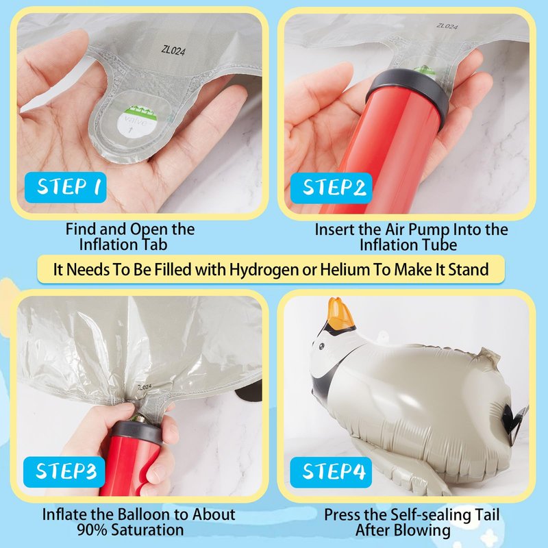 - Easy to Use: The inflation process of the balloon is simple. Just inject 80-90% of air or helium into the penguin balloon, then just blow the balloon flat and pinch the balloon mouth, and the rubber ball mouth will automatically seal. The package contains 1 roll of ribbon and 1 blowing straw for your convenience to inflate and hang.