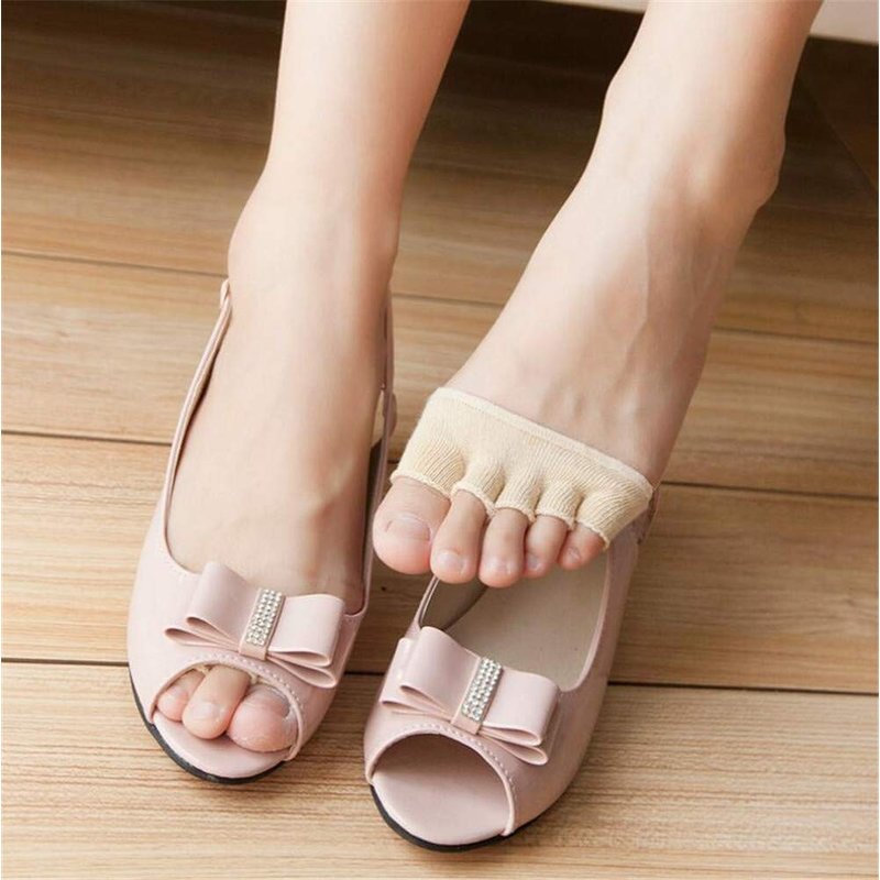Open Five-Toes Socks Forefoot Pads, Women Anti-Slip Breathable Sweat-Absorbent Peep Toe Half Socks Cushions, Relief Forefoot Pain Toe Separating Correction Socks No Show Heelless Toe Socks (Skin)
