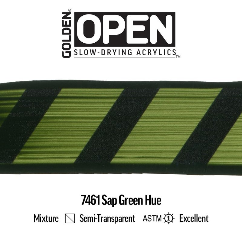 OPEN Slow-Drying Acrylics by GOLDEN, Sap Green Hue, 2 fl oz. tube, Professional Acrylic Paint, Semi-Transparent