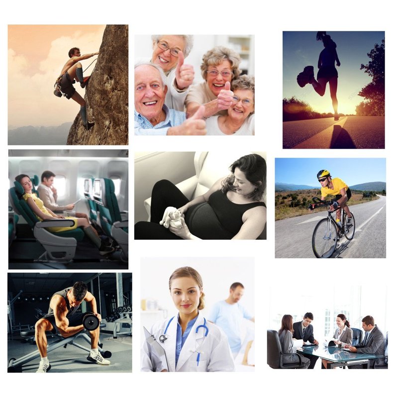 Suitable for nurses and medical personnel, people standing or sitting long hours, tired or swollen legs, fluids retention, varicose veins, pregnancy, travel (to prevent DVT a.k.a. Economy Class Syndrome), sports and athletics, everyday life and men (yes they look pretty good on them too!)