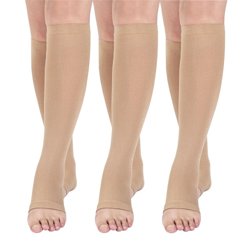Open toe Toeless Compression Socks 3 Pairs for Women Men 15-20 mmHg Support Running Travel Pregnancy(S/M, Nude)