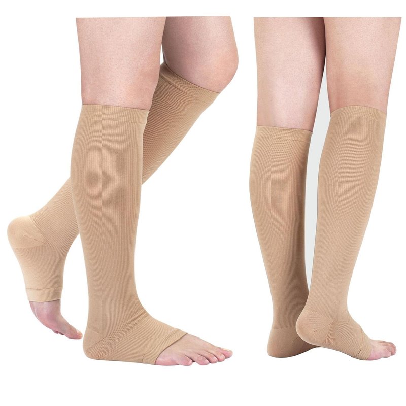 - Open Toe Compression Socks women fit any shoe. Discreet and stylish design for walking, sitting, standing, travel and all attire from casual to work, dress..Our open toe compression socks not for 6 foot tall person.If you fell toeless socks too small or too tight, you can go up a size