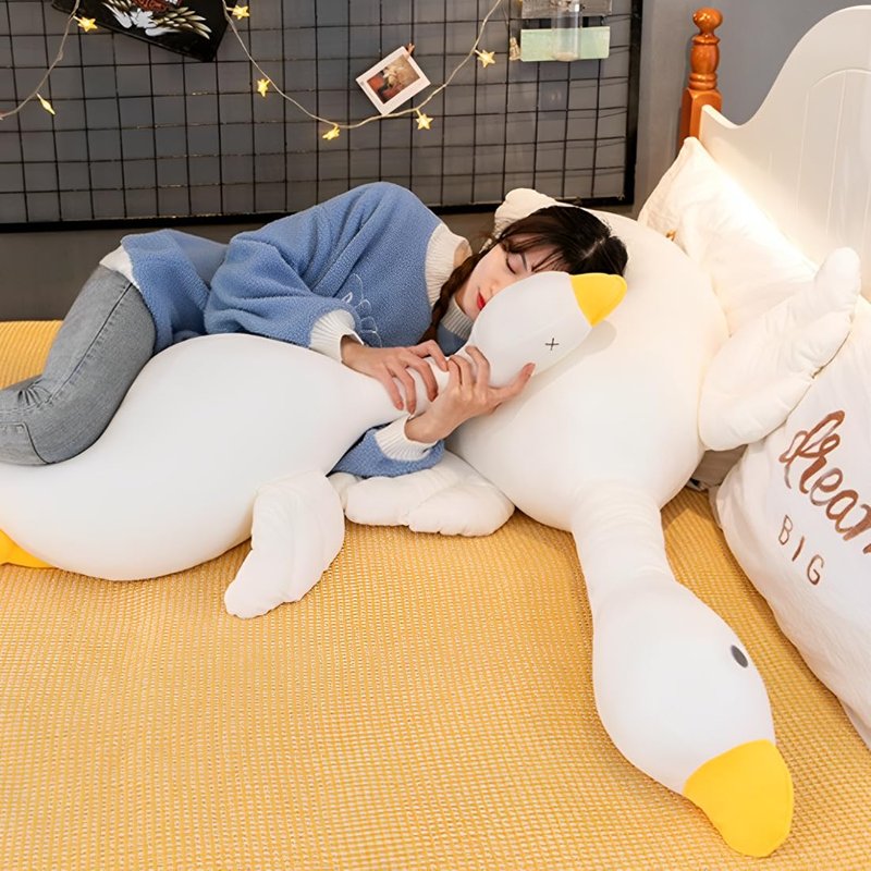 - The huge plushies white goose Perfect for hugging and snuggling,ease work fatigue and give you a relaxing moment.If you are tired, it is a good goose plush sleeping pillow;If you are watching TV, it is a good goose sofa pillow; if you are lonely, it is a good company; if you are Stressed out, it is a good stuffed duck decompression toy.