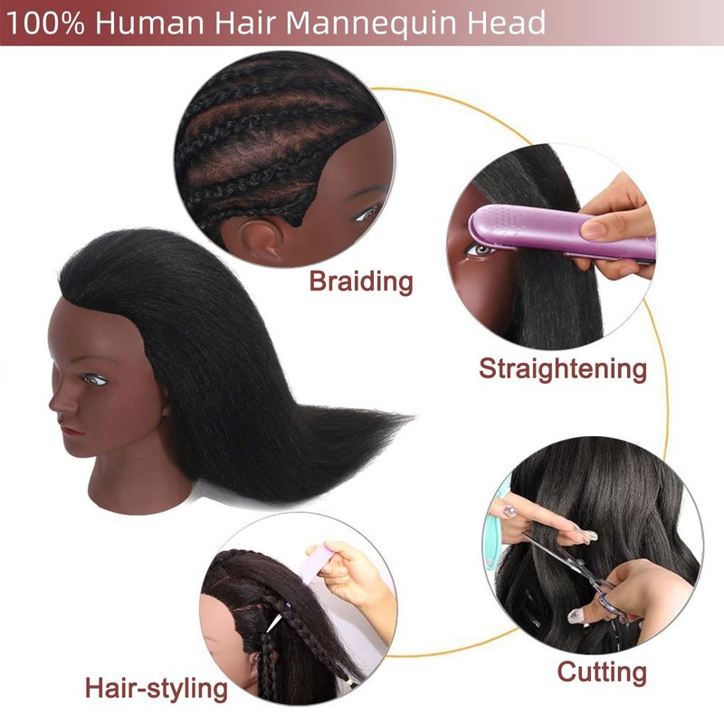 - 💗 Box Includes: A mannequin head with human hair , a free table clamp holder and tools pack.