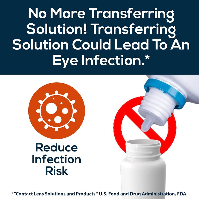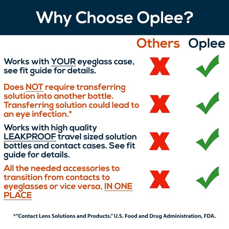 - 【Don’t Transfer Solution】No need to transfer solution from a large bottle to a smaller one. Which is not sterile, and potentially unsafe. Use standard travel-sized (2 fl oz) contact solution bottles with Oplee.