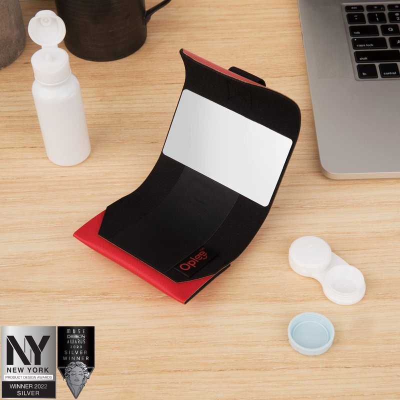 Oplee™ Travel Contact Lens Case, Portable Design with Built-in Mirror (Travel Case Only) (Red)