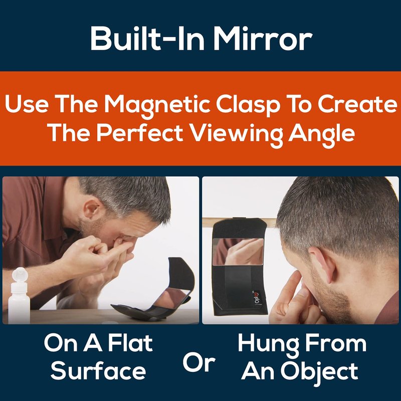 Oplee Travel Contact Lens Kit makes it easy to transition from wearing contact lenses to eyeglasses or vice versa while on the go. Oplee's patented design includes a built-in mirror and pockets for a travel-sized contact solution bottle and a contact lens case. Oplee works with your existing eyeglass case to ensure that you'll always have your eyeglasses, contact lenses, and transition accessories together in one place. ***Eyeglass case, solution bottle, and contact lens case for demonstration purposes only; not included.***