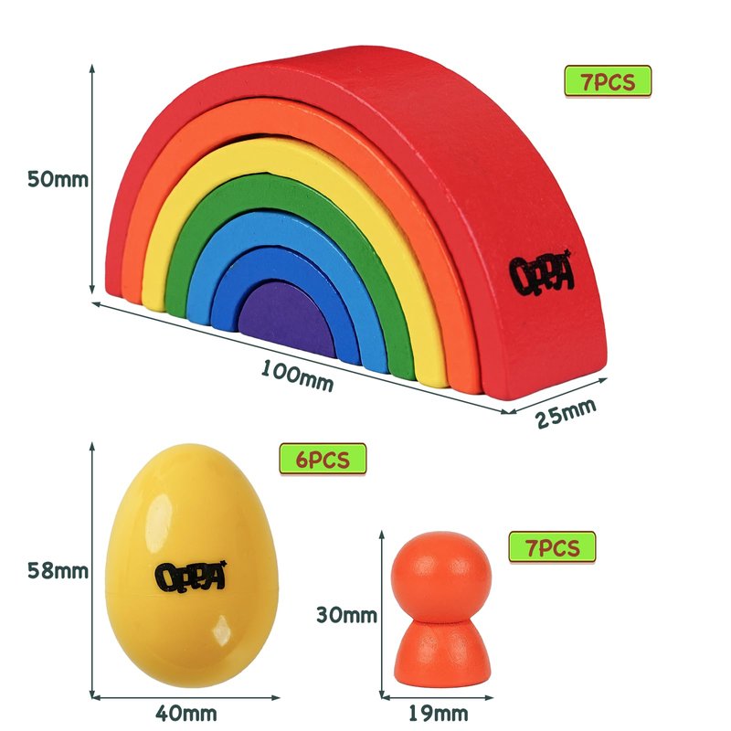 - 【SAFE AND HIGH QUALITY】Contains small parts, suitable for children over 5 years old. Our musical egg shakers are made from highly durable materials, and the rainbow stacking toy is crafted from eco-friendly wood, painted with non-toxic paints. All toys are meticulously polished for smooth edges, ensuring safety for children during play.