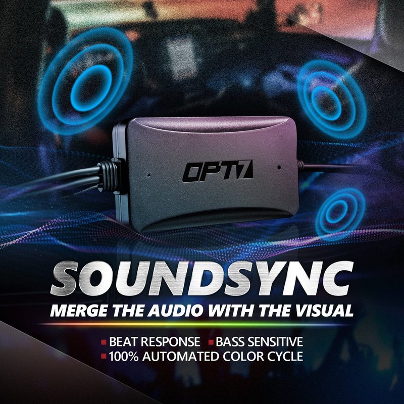 - [Proprietary OPT7 Connect App] OPT7 to bring you our exclusive full-featured Bluetooth App so you can customize your unique style! Download OPT7 Connect on your smartphone. Save Presets, adjust the brightness, and in-app CS support! You can choose between solid, strobe, fade, color cycle, and soundsync modes - have them all at once if you want a party on the road.