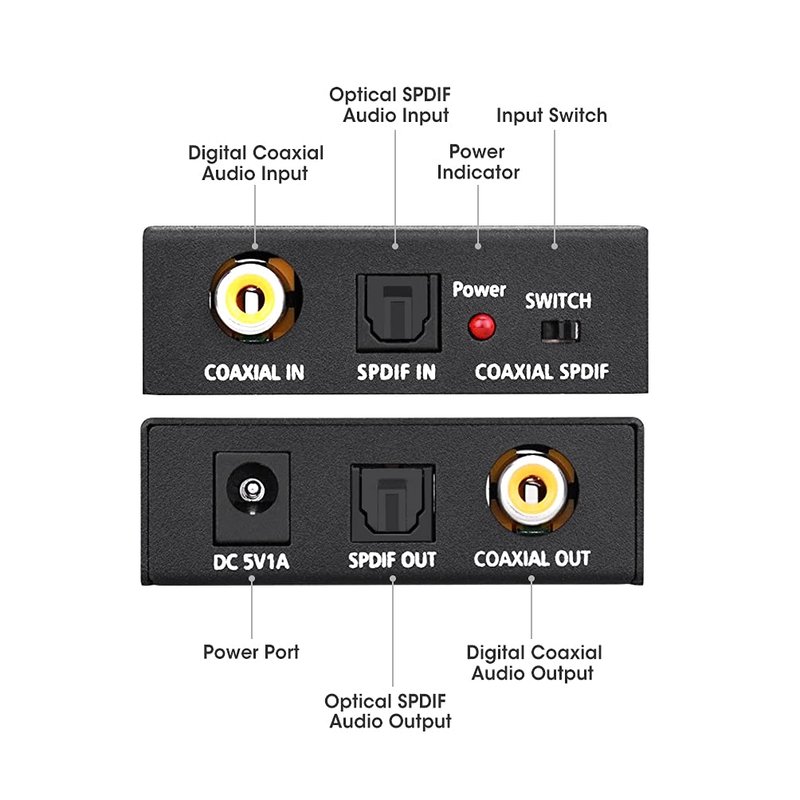 - 【Bi-Directional Digital Audio Converter】This 2-way audio adapter allows you to convert Optical to/from digital coaxial, an input selection switch can easily select either SPDIF (Optical/Toslink) or Coaxial input