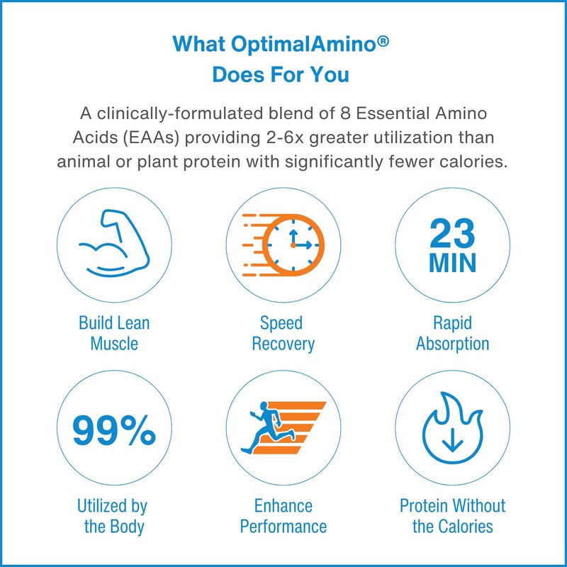 - No bloat! Ultra-low calorie. OptimalAmino essential amino acids (EAAs) are the perfect replacement for animal and plant-based dietary protein and protein powders.