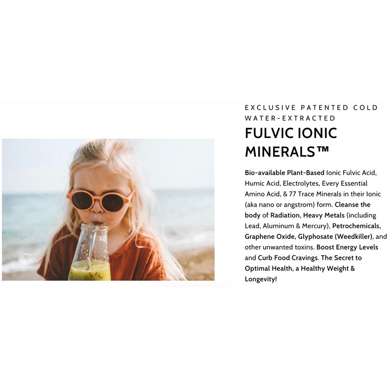 WATER EXTRACTED FULVIC IONIC ACID X100 CONCENTRATION - Optimally Organic's Exclusive Patented Water Extracted Fulvic Ionic Minerals contains a bio-available and organically complexed Fulvic Acid X100 concentration. Our Ionic Trace Mineral drops contain nature's perfect balance of humic acid, fulvic acid, electrolytes and essential amino acids. Safe & Effective for the Whole Family, and Your Pets!