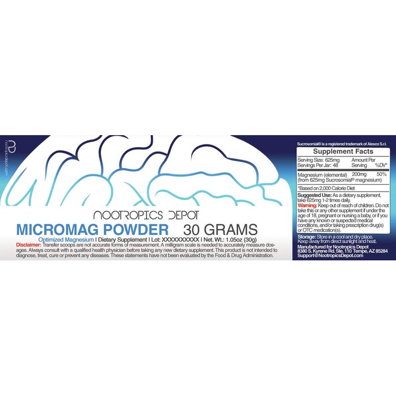 Optimized Magnesium Supplement | MicroMag Powder | 30 Grams | 200mg of Elemental Magnesium Per Serving | Supports Brain Health + Sleep Quality | Promotes Relaxation