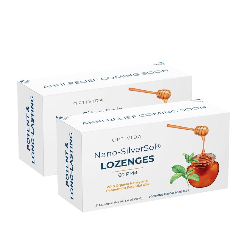 Optivida Health Original Natural Premium Nano-Silver Sol Lozenges 60PPM,Oral Health, Supports Immune System, Fast-Acting Cough Drops with Lemon Oil, Organic Honey and Peppermint Oil (2 Pack)