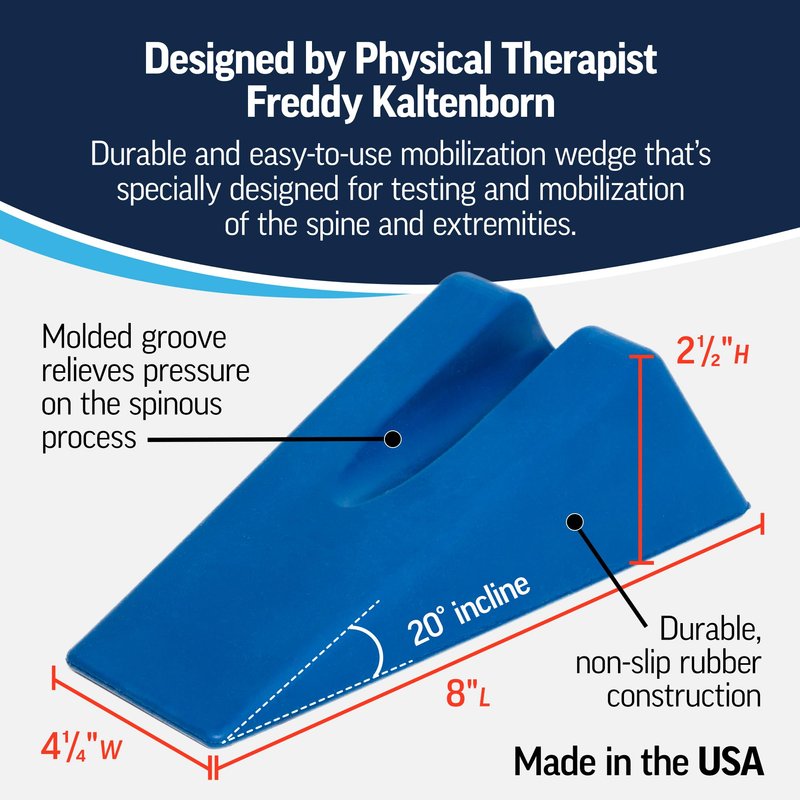 - Designed by Physical Therapist Freddy Kaltenborn: Each small wedge features a molded groove that relieves pressure on the spinous process when used as a back wedge, facilitating mobilization via the transverse process while mobilizing the spine.