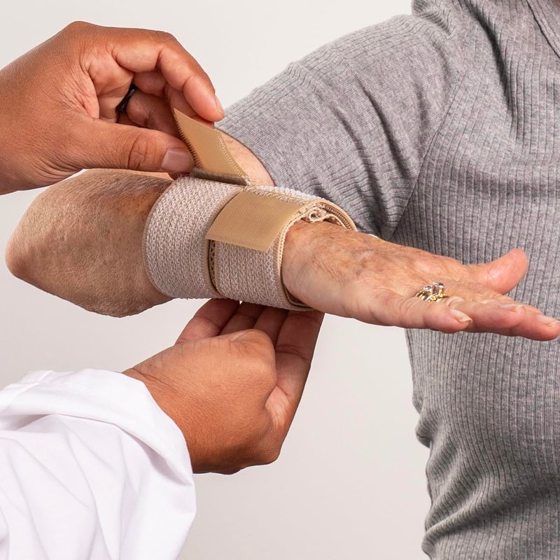 In addition, the proximal straps, together with the anti-slip material on the inside of the sleeve, prevent the brace from sliding upward on the wrist.