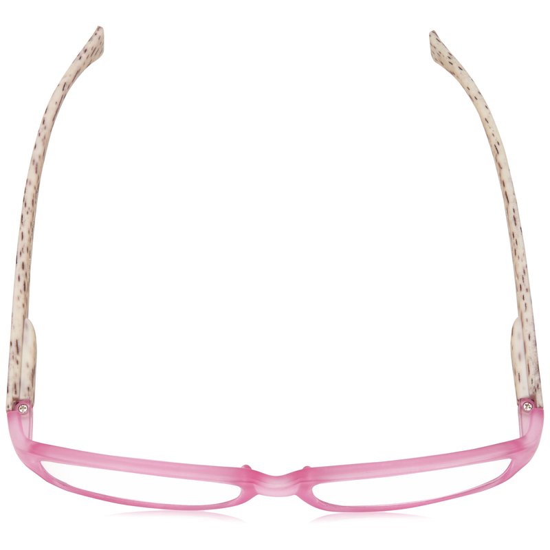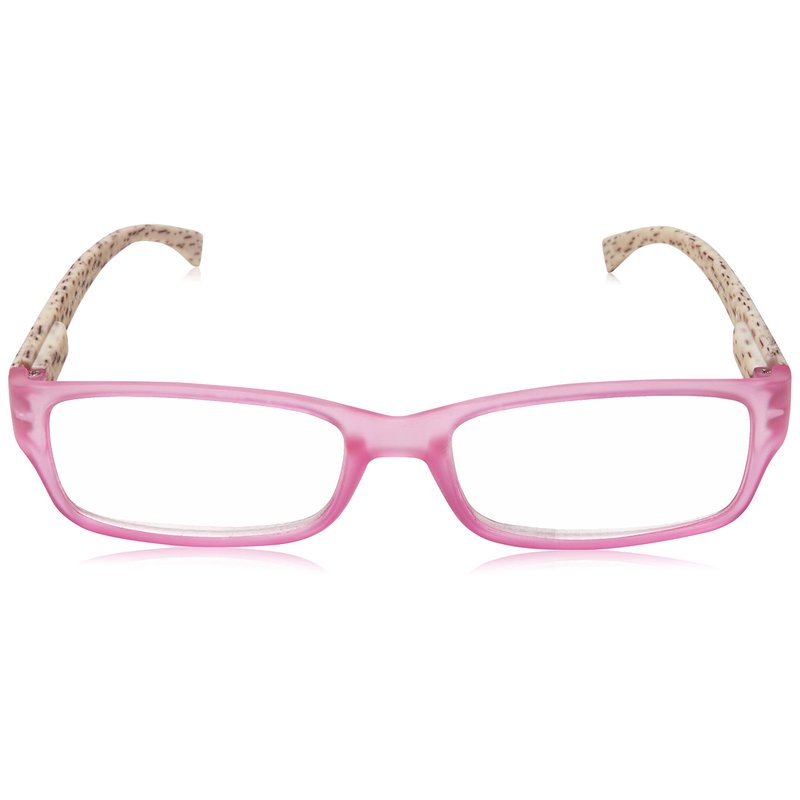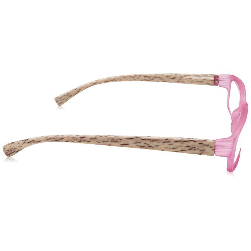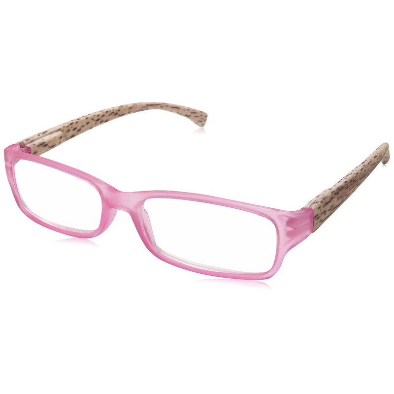 OPTX 20/20 Women's Tropic Rectangular Reading Glasses, Transparent Pink with Wooden Pattern Temples, 52 mm + 6
