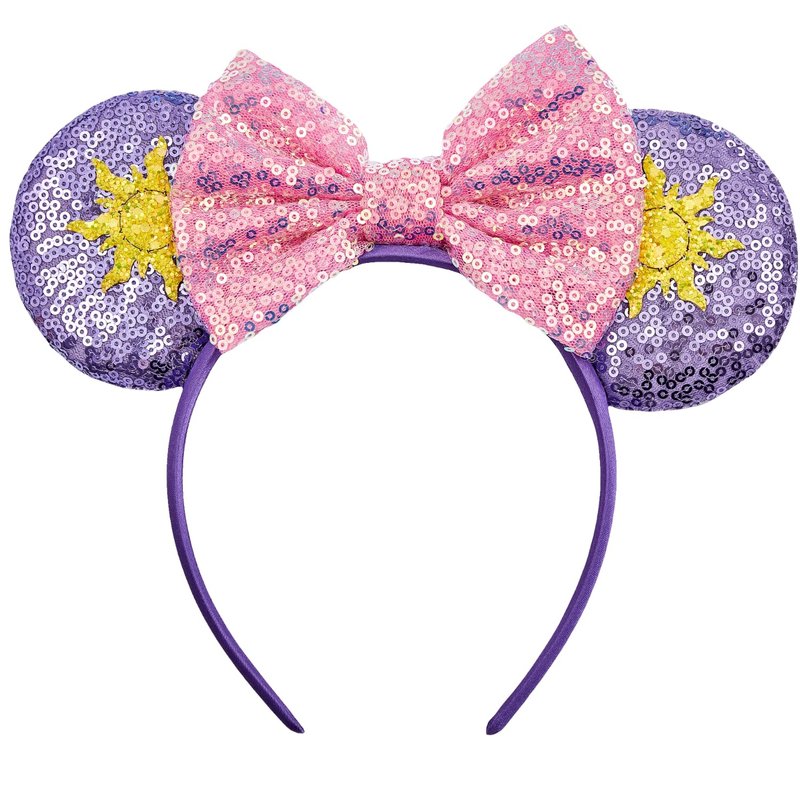 Opzzqz Mouse Ear Headbands for Women Giltter Bow Headband for Girls and Adult Birthday Party Decorations for Halloween Christmas (Rapunzel01A)