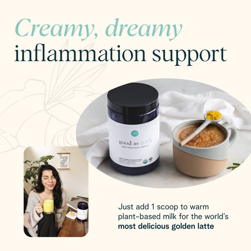 - Supports Your Body: Curcumin, the active ingredient in Turmeric (that's in your latte!), has been studied to support your body in a normal response to inflammatory foods or drinks. Ora's Good as Gold includes organic turmeric and organic black pepper extract to increase absorption and maximize the effectiveness of its ingredients.