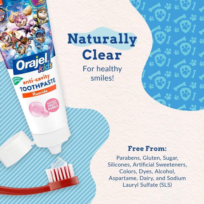 Orajel Kids Paw Patrol Anti-Cavity Fluoride Toothpaste, Natural Fruity Bubble Flavor, 4.2oz Tube