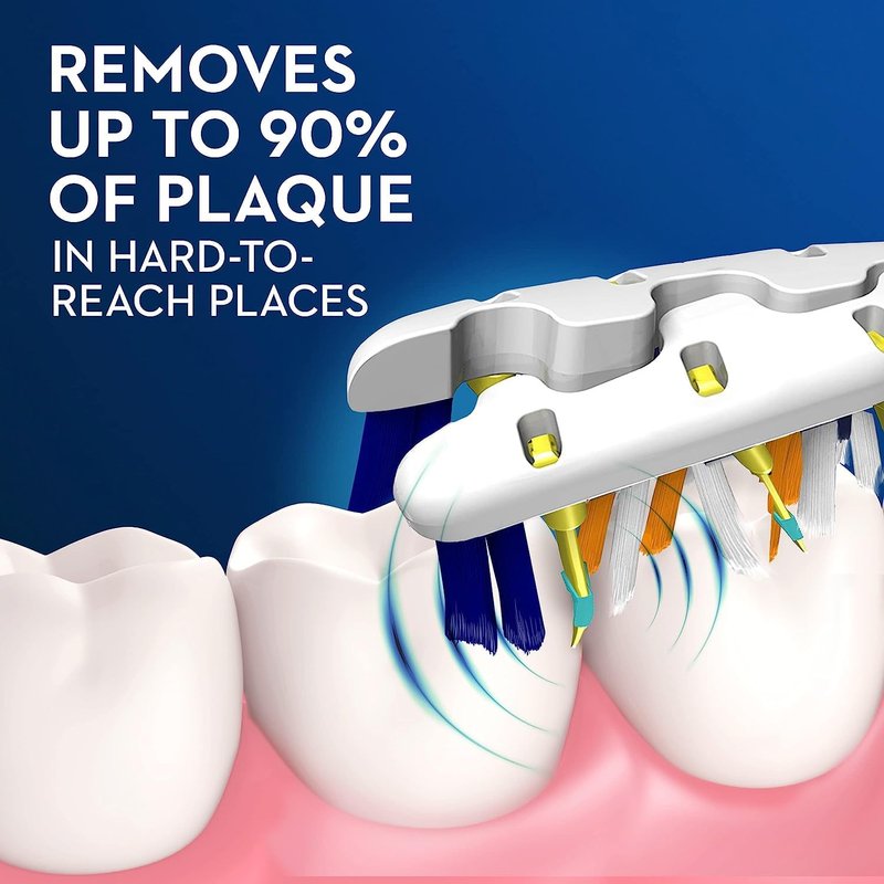 - Removes up to 90% of plaque in hard-to-reach places