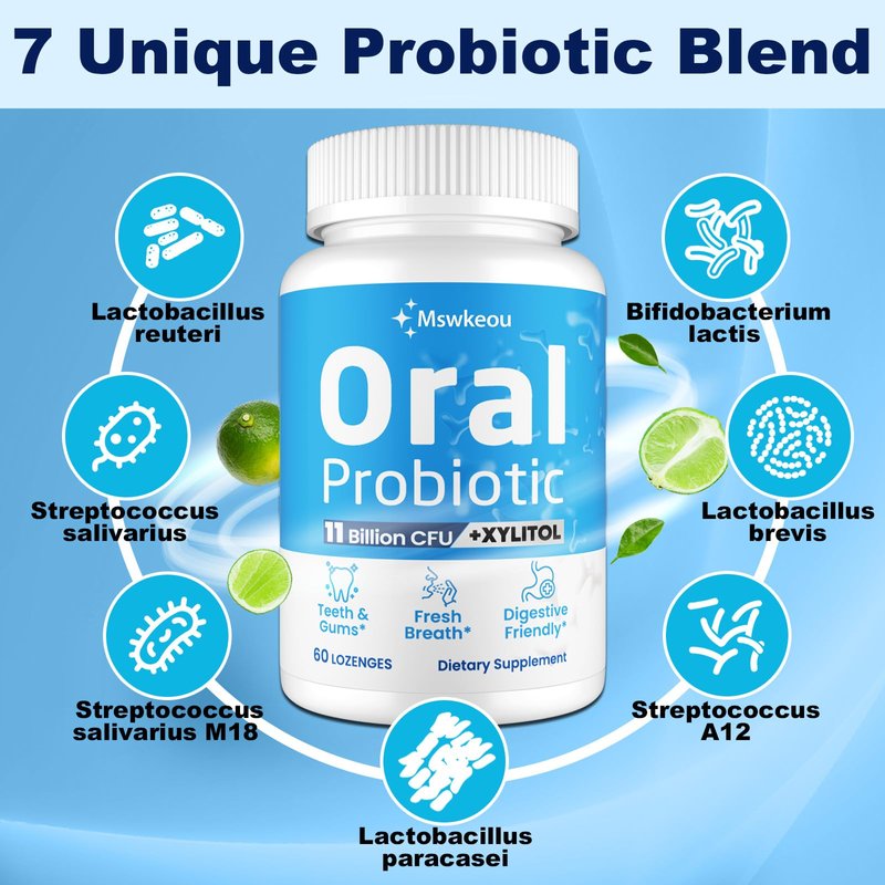 - Comprehensive Oral Health - Our advanced oral probiotics feature 7 potent strains and 11 billion CFUs per serving for healthy gums, fresher breath, dry mouth relief, and overall oral wellness. A full-spectrum oral care solution targeting bad breath and gum health for a healthier smile