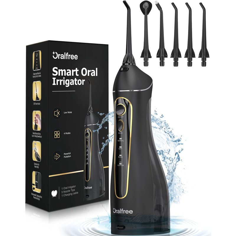 - Oralfree Braces Flossers Kit : The electric water dental picks teeth cleaning kit with handheld features an ergonomic design and upgraded pulsation technique, with mouthwash whitening pressure water pulse 1400-1800 times/min, 30-110PSI strong water pressure to effectively removes all the trapped food stuck that traditional brushing and flossing can't reach, benefitful for brace and bridge personal toothbrushes denture bath care
