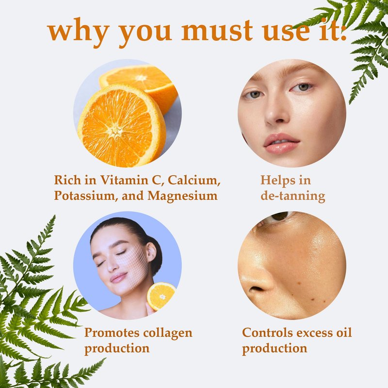 - The abundant vitamin C and anti-oxidants in orange peels prevent your skin from getting too oily or dry. When applied to the skin, they also work as a toner, removing dead cells and dirt and tightening pores.